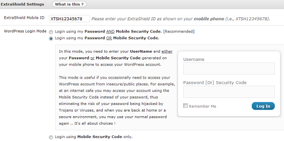 Login Mode 3: Login using Mobile Security Code only.